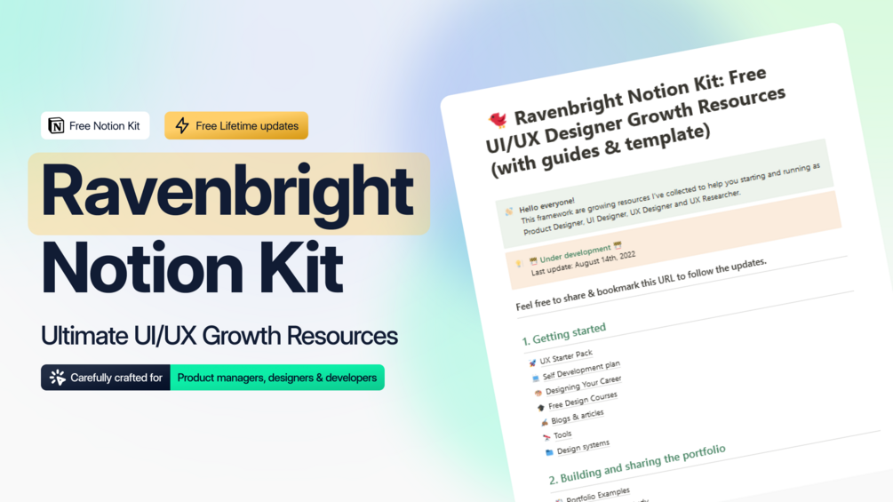 Ravenbright Notion Kit: Free UI/UX Designer Growth Resources (with guides & template)